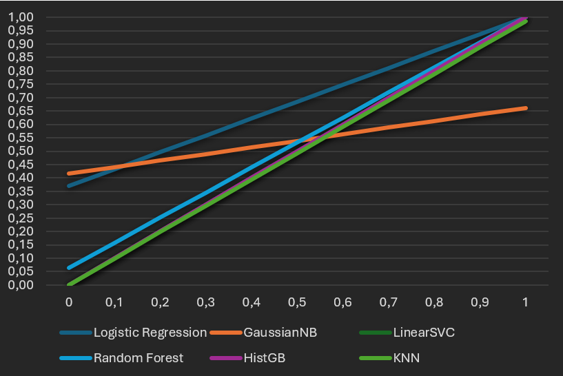 Trained several classifiers on the same labeled set; selection used metrics and ROC behavior.